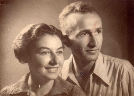 הוריו של אריה באו לבקר לראשונה בבית השיטה בתמונה ציפורה ואריה פרידמן לבוב ליד עמדת הקומותיים 1940