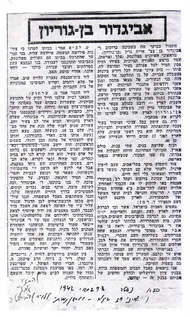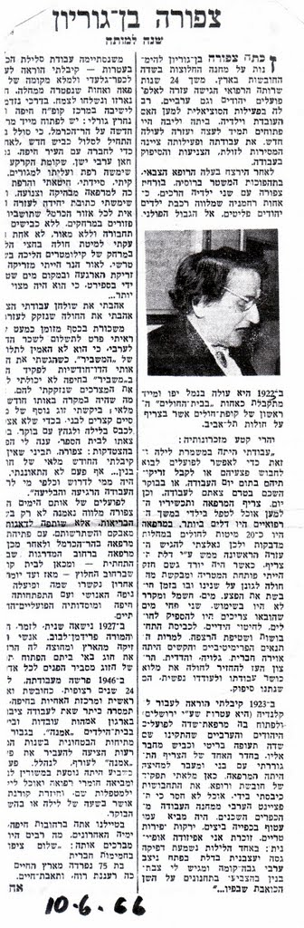 ציפורה בן גוריון – מסמכים תעודות ומודעות