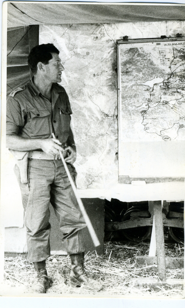 סא ל לוי מן מג ד 25 נותן למ פים ולקציני המטה את פקודת המבצע להתקפה על יעבד בשומרון. מנסורה (יוקנעם) 5.6.1967 צילום דֶ